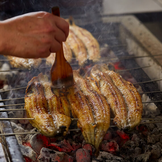 名物「一本鰻」に象徴されるように、お客様の前で捌き、炭火で焼き上げ、そのまま届ける。